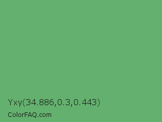Yxy 34.886,0.3,0.443 Color is a normal green color and the nearest color is Fern #63b76c. Hex code #64b06e and RGB value is rgb(100,176,110). In RGB color space, this color is composed of 39% red, 69% green, 43% blue, In CMYK color space, this color is composed of 43% cyan, 0% magenta, 38% yellow , 31% black , In HSL color space, this color has a hue angle of 128° , 32% saturation and 54% lightness.
