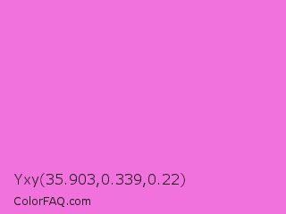 Yxy 35.903,0.339,0.22 Color is a light magenta color and the nearest color is Pale Magenta #f984e5. Hex code #f172dc and RGB value is rgb(241,114,220). In RGB color space, this color is composed of 95% red, 45% green, 86% blue, In CMYK color space, this color is composed of 0% cyan, 53% magenta, 9% yellow , 5% black , In HSL color space, this color has a hue angle of 310° , 82% saturation and 70% lightness.