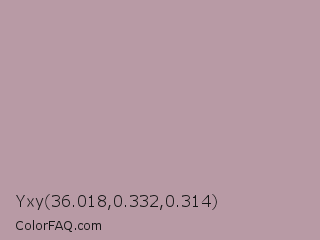Yxy 36.018,0.332,0.314 Color is a light rose color and the nearest color is Lilac Luster #ae98aa. Hex code #b89aa5 and RGB value is rgb(184,154,165). In RGB color space, this color is composed of 72% red, 60% green, 65% blue, In CMYK color space, this color is composed of 0% cyan, 16% magenta, 10% yellow , 28% black , In HSL color space, this color has a hue angle of 338° , 17% saturation and 66% lightness.