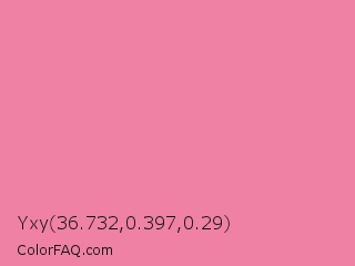 Yxy 36.732,0.397,0.29 Color is a light rose color and the nearest color is Carissma #ea88a8. Hex code #ef81a4 and RGB value is rgb(239,129,164). In RGB color space, this color is composed of 94% red, 51% green, 64% blue, In CMYK color space, this color is composed of 0% cyan, 46% magenta, 31% yellow , 6% black , In HSL color space, this color has a hue angle of 341° , 77% saturation and 72% lightness.