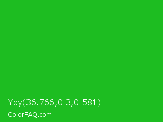 Yxy 36.766,0.3,0.581 Color is a normal green color and the nearest color is Wageningen Green #34b233. Hex code #1dbd21 and RGB value is rgb(29,189,33). In RGB color space, this color is composed of 11% red, 74% green, 13% blue, In CMYK color space, this color is composed of 85% cyan, 0% magenta, 83% yellow , 26% black , In HSL color space, this color has a hue angle of 122° , 73% saturation and 43% lightness.
