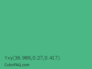 Yxy 36.989,0.27,0.417 Color is a normal green color and the nearest color is Mint #3eb489. Hex code #4ab784 and RGB value is rgb(74,183,132). In RGB color space, this color is composed of 29% red, 72% green, 52% blue, In CMYK color space, this color is composed of 60% cyan, 0% magenta, 28% yellow , 28% black , In HSL color space, this color has a hue angle of 152° , 43% saturation and 50% lightness.