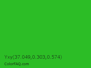 Yxy 37.049,0.303,0.574 Color is a normal green color and the nearest color is Wageningen Green #34b233. Hex code #2cbd26 and RGB value is rgb(44,189,38). In RGB color space, this color is composed of 17% red, 74% green, 15% blue, In CMYK color space, this color is composed of 77% cyan, 0% magenta, 80% yellow , 26% black , In HSL color space, this color has a hue angle of 118° , 67% saturation and 45% lightness.