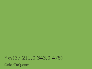 Yxy 37.211,0.343,0.478 Color is a normal green color and the nearest color is Chelsea Cucumber #83aa5d. Hex code #82b253 and RGB value is rgb(130,178,83). In RGB color space, this color is composed of 51% red, 70% green, 33% blue, In CMYK color space, this color is composed of 27% cyan, 0% magenta, 53% yellow , 30% black , In HSL color space, this color has a hue angle of 90° , 38% saturation and 51% lightness.