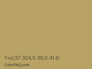 Yxy 37.324,0.39,0.414 Color is a normal orange color and the nearest color is Husk #b7a458. Hex code #b8a365 and RGB value is rgb(184,163,101). In RGB color space, this color is composed of 72% red, 64% green, 40% blue, In CMYK color space, this color is composed of 0% cyan, 11% magenta, 45% yellow , 28% black , In HSL color space, this color has a hue angle of 45° , 37% saturation and 56% lightness.