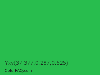 Yxy 37.377,0.287,0.525 Color is a normal green color and the nearest color is Wageningen Green #34b233. Hex code #28bd4e and RGB value is rgb(40,189,78). In RGB color space, this color is composed of 16% red, 74% green, 31% blue, In CMYK color space, this color is composed of 79% cyan, 0% magenta, 59% yellow , 26% black , In HSL color space, this color has a hue angle of 135° , 65% saturation and 45% lightness.