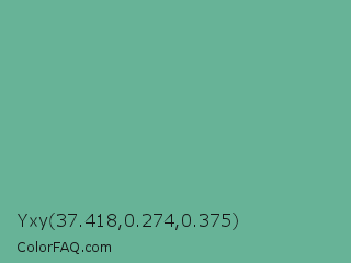 Yxy 37.418,0.274,0.375 Color is a normal green color and the nearest color is Silver Tree #66b58f. Hex code #67b397 and RGB value is rgb(103,179,151). In RGB color space, this color is composed of 40% red, 70% green, 59% blue, In CMYK color space, this color is composed of 42% cyan, 0% magenta, 16% yellow , 30% black , In HSL color space, this color has a hue angle of 158° , 33% saturation and 55% lightness.