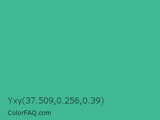 Yxy 37.509,0.256,0.39 Color is a normal green color and the nearest color is Ocean Green #48bf91. Hex code #40b894 and RGB value is rgb(64,184,148). In RGB color space, this color is composed of 25% red, 72% green, 58% blue, In CMYK color space, this color is composed of 65% cyan, 0% magenta, 20% yellow , 28% black , In HSL color space, this color has a hue angle of 162° , 48% saturation and 49% lightness.