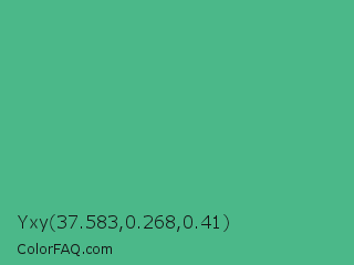 Yxy 37.583,0.268,0.41 Color is a normal green color and the nearest color is Ocean Green #48bf91. Hex code #4bb889 and RGB value is rgb(75,184,137). In RGB color space, this color is composed of 29% red, 72% green, 54% blue, In CMYK color space, this color is composed of 59% cyan, 0% magenta, 26% yellow , 28% black , In HSL color space, this color has a hue angle of 154° , 43% saturation and 51% lightness.