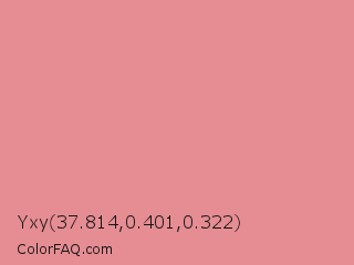 Yxy 37.814,0.401,0.322 Color is a light red color and the nearest color is Ruddy Pink #e18e96. Hex code #e58d93 and RGB value is rgb(229,141,147). In RGB color space, this color is composed of 90% red, 55% green, 58% blue, In CMYK color space, this color is composed of 0% cyan, 38% magenta, 36% yellow , 10% black , In HSL color space, this color has a hue angle of 356° , 63% saturation and 73% lightness.