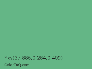 Yxy 37.886,0.284,0.409 Color is a normal green color and the nearest color is Silver Tree #66b58f. Hex code #64b686 and RGB value is rgb(100,182,134). In RGB color space, this color is composed of 39% red, 71% green, 53% blue, In CMYK color space, this color is composed of 45% cyan, 0% magenta, 26% yellow , 29% black , In HSL color space, this color has a hue angle of 145° , 36% saturation and 55% lightness.