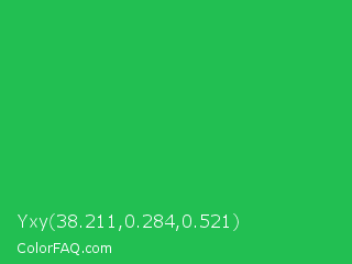 Yxy 38.211,0.284,0.521 Color is a normal green color and the nearest color is Malachite #0bda51. Hex code #22bf52 and RGB value is rgb(34,191,82). In RGB color space, this color is composed of 13% red, 75% green, 32% blue, In CMYK color space, this color is composed of 82% cyan, 0% magenta, 57% yellow , 25% black , In HSL color space, this color has a hue angle of 138° , 70% saturation and 44% lightness.