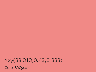 Yxy 38.313,0.43,0.333 Color is a light red color and the nearest color is Geraldine #fb8989. Hex code #f18986 and RGB value is rgb(241,137,134). In RGB color space, this color is composed of 95% red, 54% green, 53% blue, In CMYK color space, this color is composed of 0% cyan, 43% magenta, 44% yellow , 5% black , In HSL color space, this color has a hue angle of 2° , 79% saturation and 74% lightness.