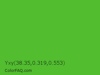 Yxy 38.35,0.319,0.553 Color is a normal green color and the nearest color is Kelly Green #4cbb17. Hex code #51bd2f and RGB value is rgb(81,189,47). In RGB color space, this color is composed of 32% red, 74% green, 18% blue, In CMYK color space, this color is composed of 57% cyan, 0% magenta, 75% yellow , 26% black , In HSL color space, this color has a hue angle of 106° , 60% saturation and 46% lightness.