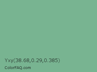 Yxy 38.68,0.29,0.385 Color is a normal green color and the nearest color is Bay Leaf #7da98d. Hex code #78b491 and RGB value is rgb(120,180,145). In RGB color space, this color is composed of 47% red, 71% green, 57% blue, In CMYK color space, this color is composed of 33% cyan, 0% magenta, 19% yellow , 29% black , In HSL color space, this color has a hue angle of 145° , 29% saturation and 59% lightness.