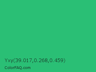 Yxy 39.017,0.268,0.459 Color is a normal green color and the nearest color is Medium Sea Green #3cb371. Hex code #2abf75 and RGB value is rgb(42,191,117). In RGB color space, this color is composed of 16% red, 75% green, 46% blue, In CMYK color space, this color is composed of 78% cyan, 0% magenta, 39% yellow , 25% black , In HSL color space, this color has a hue angle of 150° , 64% saturation and 46% lightness.