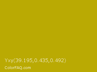 Yxy 39.195,0.435,0.492 Color is a normal yellow color and the nearest color is Buddha Gold #c1a004. Hex code #baaa03 and RGB value is rgb(186,170,3). In RGB color space, this color is composed of 73% red, 67% green, 1% blue, In CMYK color space, this color is composed of 0% cyan, 9% magenta, 98% yellow , 27% black , In HSL color space, this color has a hue angle of 55° , 97% saturation and 37% lightness.