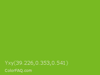 Yxy 39.226,0.353,0.541 Color is a normal green color and the nearest color is Lima #76bd17. Hex code #78ba21 and RGB value is rgb(120,186,33). In RGB color space, this color is composed of 47% red, 73% green, 13% blue, In CMYK color space, this color is composed of 35% cyan, 0% magenta, 82% yellow , 27% black , In HSL color space, this color has a hue angle of 86° , 70% saturation and 43% lightness.