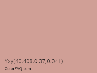 Yxy 40.408,0.37,0.341 Color is a light red color and the nearest color is Eunry #cfa39d. Hex code #d09f96 and RGB value is rgb(208,159,150). In RGB color space, this color is composed of 82% red, 62% green, 59% blue, In CMYK color space, this color is composed of 0% cyan, 24% magenta, 28% yellow , 18% black , In HSL color space, this color has a hue angle of 9° , 38% saturation and 70% lightness.