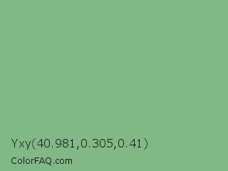 Yxy 40.981,0.305,0.41 Color is a light green color and the nearest color is De York #7ac488. Hex code #80b985 and RGB value is rgb(128,185,133). In RGB color space, this color is composed of 50% red, 73% green, 52% blue, In CMYK color space, this color is composed of 31% cyan, 0% magenta, 28% yellow , 27% black , In HSL color space, this color has a hue angle of 125° , 29% saturation and 61% lightness.