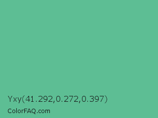 Yxy 41.292,0.272,0.397 Color is a normal green color and the nearest color is Silver Tree #66b58f. Hex code #5dbe94 and RGB value is rgb(93,190,148). In RGB color space, this color is composed of 36% red, 75% green, 58% blue, In CMYK color space, this color is composed of 51% cyan, 0% magenta, 22% yellow , 25% black , In HSL color space, this color has a hue angle of 154° , 43% saturation and 55% lightness.