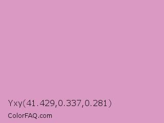 Yxy 41.429,0.337,0.281 Color is a light magenta color and the nearest color is Light Medium Orchid #d39bcb. Hex code #d999c2 and RGB value is rgb(217,153,194). In RGB color space, this color is composed of 85% red, 60% green, 76% blue, In CMYK color space, this color is composed of 0% cyan, 29% magenta, 11% yellow , 15% black , In HSL color space, this color has a hue angle of 322° , 46% saturation and 73% lightness.
