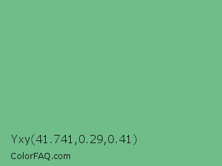 Yxy 41.741,0.29,0.41 Color is a normal green color and the nearest color is De York #7ac488. Hex code #70bd8a and RGB value is rgb(112,189,138). In RGB color space, this color is composed of 44% red, 74% green, 54% blue, In CMYK color space, this color is composed of 41% cyan, 0% magenta, 27% yellow , 26% black , In HSL color space, this color has a hue angle of 140° , 37% saturation and 59% lightness.
