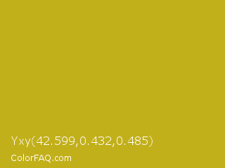 Yxy 42.599,0.432,0.485 Color is a normal yellow color and the nearest color is Hokey Pokey #c8a528. Hex code #c2b01b and RGB value is rgb(194,176,27). In RGB color space, this color is composed of 76% red, 69% green, 11% blue, In CMYK color space, this color is composed of 0% cyan, 9% magenta, 86% yellow , 24% black , In HSL color space, this color has a hue angle of 54° , 76% saturation and 43% lightness.