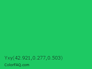 Yxy 42.921,0.277,0.503 Color is a normal green color and the nearest color is Malachite #0bda51. Hex code #1dc963 and RGB value is rgb(29,201,99). In RGB color space, this color is composed of 11% red, 79% green, 39% blue, In CMYK color space, this color is composed of 86% cyan, 0% magenta, 51% yellow , 21% black , In HSL color space, this color has a hue angle of 144° , 75% saturation and 45% lightness.