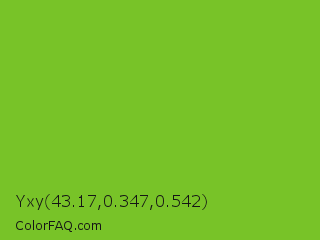 Yxy 43.17,0.347,0.542 Color is a normal green color and the nearest color is Lima #76bd17. Hex code #78c328 and RGB value is rgb(120,195,40). In RGB color space, this color is composed of 47% red, 76% green, 16% blue, In CMYK color space, this color is composed of 38% cyan, 0% magenta, 79% yellow , 24% black , In HSL color space, this color has a hue angle of 89° , 66% saturation and 46% lightness.