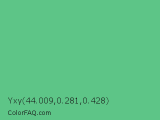 Yxy 44.009,0.281,0.428 Color is a normal green color and the nearest color is Silver Tree #66b58f. Hex code #5dc587 and RGB value is rgb(93,197,135). In RGB color space, this color is composed of 36% red, 77% green, 53% blue, In CMYK color space, this color is composed of 53% cyan, 0% magenta, 31% yellow , 23% black , In HSL color space, this color has a hue angle of 144° , 47% saturation and 57% lightness.