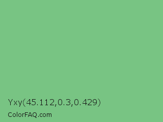 Yxy 45.112,0.3,0.429 Color is a light green color and the nearest color is De York #7ac488. Hex code #78c483 and RGB value is rgb(120,196,131). In RGB color space, this color is composed of 47% red, 77% green, 51% blue, In CMYK color space, this color is composed of 39% cyan, 0% magenta, 33% yellow , 23% black , In HSL color space, this color has a hue angle of 129° , 39% saturation and 62% lightness.