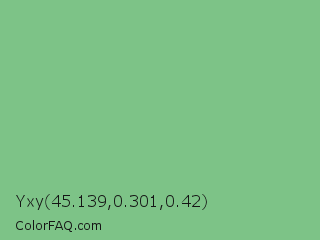 Yxy 45.139,0.301,0.42 Color is a light green color and the nearest color is De York #7ac488. Hex code #7dc387 and RGB value is rgb(125,195,135). In RGB color space, this color is composed of 49% red, 76% green, 53% blue, In CMYK color space, this color is composed of 36% cyan, 0% magenta, 31% yellow , 24% black , In HSL color space, this color has a hue angle of 129° , 37% saturation and 63% lightness.