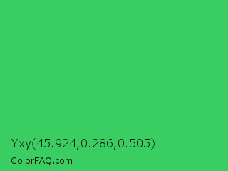 Yxy 45.924,0.286,0.505 Color is a normal green color and the nearest color is UFO Green #3cd070. Hex code #3ace62 and RGB value is rgb(58,206,98). In RGB color space, this color is composed of 23% red, 81% green, 38% blue, In CMYK color space, this color is composed of 72% cyan, 0% magenta, 52% yellow , 19% black , In HSL color space, this color has a hue angle of 136° , 60% saturation and 52% lightness.