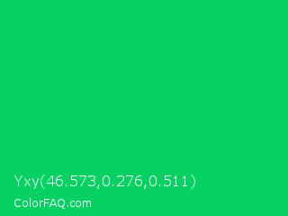 Yxy 46.573,0.276,0.511 Color is a normal green color and the nearest color is Malachite #0bda51. Hex code #08d163 and RGB value is rgb(8,209,99). In RGB color space, this color is composed of 3% red, 82% green, 39% blue, In CMYK color space, this color is composed of 96% cyan, 0% magenta, 53% yellow , 18% black , In HSL color space, this color has a hue angle of 147° , 93% saturation and 43% lightness.