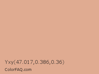 Yxy 47.017,0.386,0.36 Color is a light orange color and the nearest color is Tumbleweed #deaa88. Hex code #e0ab91 and RGB value is rgb(224,171,145). In RGB color space, this color is composed of 88% red, 67% green, 57% blue, In CMYK color space, this color is composed of 0% cyan, 24% magenta, 35% yellow , 12% black , In HSL color space, this color has a hue angle of 20° , 56% saturation and 72% lightness.