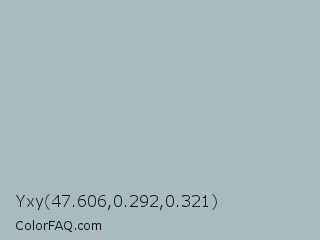 Yxy 47.606,0.292,0.321 Color is a light blue color and the nearest color is Tower Gray #a9bdbf. Hex code #a7bbc1 and RGB value is rgb(167,187,193). In RGB color space, this color is composed of 65% red, 73% green, 76% blue, In CMYK color space, this color is composed of 13% cyan, 3% magenta, 0% yellow , 24% black , In HSL color space, this color has a hue angle of 194° , 17% saturation and 71% lightness.