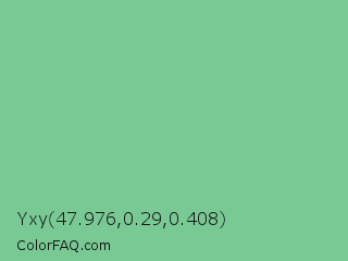 Yxy 47.976,0.29,0.408 Color is a light green color and the nearest color is De York #7ac488. Hex code #79c994 and RGB value is rgb(121,201,148). In RGB color space, this color is composed of 47% red, 79% green, 58% blue, In CMYK color space, this color is composed of 40% cyan, 0% magenta, 26% yellow , 21% black , In HSL color space, this color has a hue angle of 140° , 43% saturation and 63% lightness.