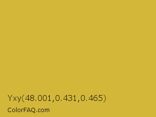 Yxy 48.001,0.431,0.465 Color is a normal yellow color and the nearest color is Old Gold #cfb53b. Hex code #d3b739 and RGB value is rgb(211,183,57). In RGB color space, this color is composed of 83% red, 72% green, 22% blue, In CMYK color space, this color is composed of 0% cyan, 13% magenta, 73% yellow , 17% black , In HSL color space, this color has a hue angle of 49° , 64% saturation and 53% lightness.