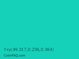Yxy 49.317,0.236,0.364 Color is a normal cyan color and the nearest color is Java #1fc2c2. Hex code #16d1ba and RGB value is rgb(22,209,186). In RGB color space, this color is composed of 9% red, 82% green, 73% blue, In CMYK color space, this color is composed of 89% cyan, 0% magenta, 11% yellow , 18% black , In HSL color space, this color has a hue angle of 173° , 81% saturation and 45% lightness.
