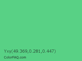 Yxy 49.369,0.281,0.447 Color is a normal green color and the nearest color is Emerald #50c878. Hex code #58d185 and RGB value is rgb(88,209,133). In RGB color space, this color is composed of 35% red, 82% green, 52% blue, In CMYK color space, this color is composed of 58% cyan, 0% magenta, 36% yellow , 18% black , In HSL color space, this color has a hue angle of 142° , 57% saturation and 58% lightness.