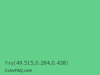 Yxy 49.515,0.284,0.438 Color is a normal green color and the nearest color is Very Light Malachite Green #64e986. Hex code #62d089 and RGB value is rgb(98,208,137). In RGB color space, this color is composed of 38% red, 82% green, 54% blue, In CMYK color space, this color is composed of 53% cyan, 0% magenta, 34% yellow , 18% black , In HSL color space, this color has a hue angle of 141° , 54% saturation and 60% lightness.