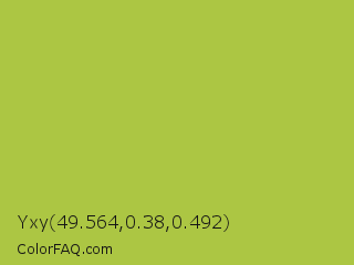 Yxy 49.564,0.38,0.492 Color is a normal lime color and the nearest color is Android Green #a4c639. Hex code #acc643 and RGB value is rgb(172,198,67). In RGB color space, this color is composed of 67% red, 78% green, 26% blue, In CMYK color space, this color is composed of 13% cyan, 0% magenta, 66% yellow , 22% black , In HSL color space, this color has a hue angle of 72° , 53% saturation and 52% lightness.