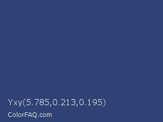 Yxy 5.785,0.213,0.195 Color is a normal blue color and the nearest color is Astronaut #283a77. Hex code #2f4275 and RGB value is rgb(47,66,117). In RGB color space, this color is composed of 18% red, 26% green, 46% blue, In CMYK color space, this color is composed of 60% cyan, 44% magenta, 0% yellow , 54% black , In HSL color space, this color has a hue angle of 224° , 43% saturation and 32% lightness.