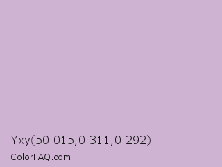 Yxy 50.015,0.311,0.292 Color is a light magenta color and the nearest color is Pink Lavender #d8b2d1. Hex code #ceb3d2 and RGB value is rgb(206,179,210). In RGB color space, this color is composed of 81% red, 70% green, 82% blue, In CMYK color space, this color is composed of 2% cyan, 15% magenta, 0% yellow , 18% black , In HSL color space, this color has a hue angle of 292° , 26% saturation and 76% lightness.