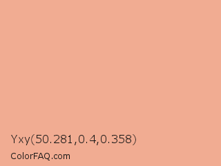 Yxy 50.281,0.4,0.358 Color is a light orange color and the nearest color is Tonys Pink #e79f8c. Hex code #f1ac92 and RGB value is rgb(241,172,146). In RGB color space, this color is composed of 95% red, 67% green, 57% blue, In CMYK color space, this color is composed of 0% cyan, 29% magenta, 39% yellow , 5% black , In HSL color space, this color has a hue angle of 16° , 77% saturation and 76% lightness.