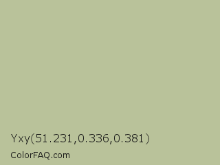 Yxy 51.231,0.336,0.381 Color is a light lime color and the nearest color is Eagle #b6baa4. Hex code #b9c29a and RGB value is rgb(185,194,154). In RGB color space, this color is composed of 73% red, 76% green, 60% blue, In CMYK color space, this color is composed of 5% cyan, 0% magenta, 21% yellow , 24% black , In HSL color space, this color has a hue angle of 74° , 25% saturation and 68% lightness.
