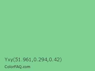 Yxy 51.961,0.294,0.42 Color is a light green color and the nearest color is De York #7ac488. Hex code #7dd192 and RGB value is rgb(125,209,146). In RGB color space, this color is composed of 49% red, 82% green, 57% blue, In CMYK color space, this color is composed of 40% cyan, 0% magenta, 30% yellow , 18% black , In HSL color space, this color has a hue angle of 135° , 48% saturation and 65% lightness.