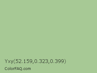 Yxy 52.159,0.323,0.399 Color is a light green color and the nearest color is Norway #a8bd9f. Hex code #a7c995 and RGB value is rgb(167,201,149). In RGB color space, this color is composed of 65% red, 79% green, 58% blue, In CMYK color space, this color is composed of 17% cyan, 0% magenta, 26% yellow , 21% black , In HSL color space, this color has a hue angle of 99° , 33% saturation and 69% lightness.