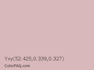 Yxy 52.425,0.339,0.327 Color is a light red color and the nearest color is Blossom #dcb4bc. Hex code #d8b8ba and RGB value is rgb(216,184,186). In RGB color space, this color is composed of 85% red, 72% green, 73% blue, In CMYK color space, this color is composed of 0% cyan, 15% magenta, 14% yellow , 15% black , In HSL color space, this color has a hue angle of 356° , 29% saturation and 78% lightness.